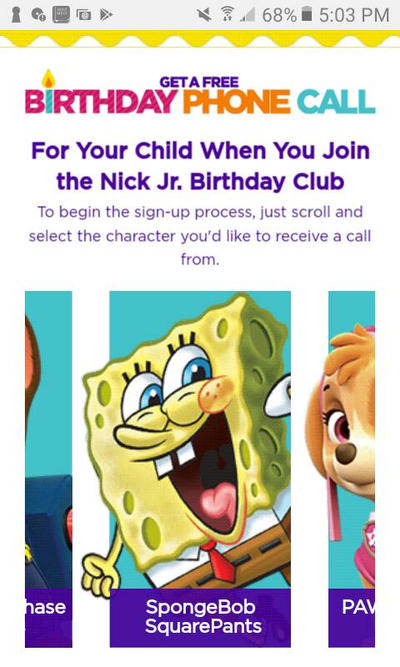 When you join the Nickelodeon Birthday Club youll can schedule free personalized birthday calls. The childrens television network is offering free personalized birthday phone calls for your child on their special day.